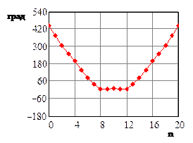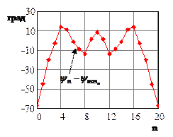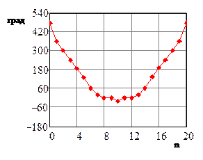 Рис. 5. Синтезированная ДН Рис. 6. Разность полученного фазового
