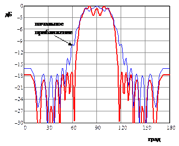 Рис. 7. Синтезированная ДН Рис. 8. Начальное и полученное