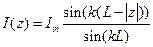 Для симметричного вибратора в силу симметрии можно записать распределение тока, справедливое на всем интервале геометрии: