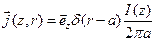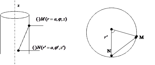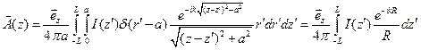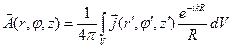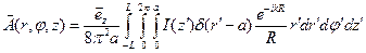 Вычислим векторный потенциал на поверхности антенны. Исходя из теоремы запаздывающих потенциалов в цилиндрической системе координат векторный потенциал определяется как: