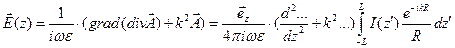 Итак, мы получили выражение для вектора напряженности электрического поля, обусловленного током, протекающим по проводнику и зависящему от геометрии антенны, длины волны, свойств среды.