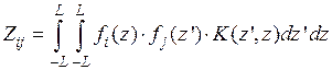 Вычисление взаимных импедансов в (8.4.7) представляет собой наиболее трудоемкую процедуру, на которую уходит основная часть машинного времени при численном решении интегрального уравнения. Удается путем двукратного применения процедуры интегрирования по частям свести двойные интегралы в СЛАУ (8.4.7) к однократному. Не повторяя подробно этот вывод, который можно найти в [Марков], приведем окончательный результат: