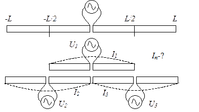 Очевидно, что для симметричной вибраторной антенны в силу очевидного соотношения