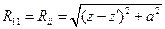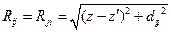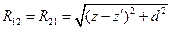 - расстояние между текущей точкой наблюдения на оси и точкой на поверхности первого вибратора, очевидно, что такое же расстояние будет и для второго вибратора, т.е.