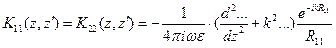 - расстояние между точкой интегрирования на оси первого и точкой наблюдения на поверхности второго вибратора. От системы уравнений (9.2) для векторного потенциала легко перейти к аналогичной системе для вектора напряженности электрического поля: