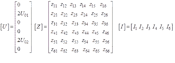 - амплитуды напряжения, выражаемые через интегралы от напряженности стороннего электрического поля, причем вектор–столбец левых частей выглядит т.о: