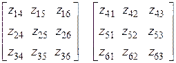 отвечают за взаимодействие сегментов в пределах первого и второго вибраторов соответственно. Внедиагональные блоки (правый верхний и левый нижний) описывают взаимное влияние сегментов, между первым и вторым вибраторами: