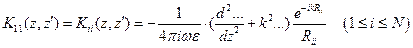 Ядра системы (9.10) содержат в себе информацию о взаимном расположении элементов, при одинаковой толщине каждого вибратора: