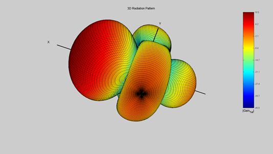 Рис.9.14. 3-Д диаграмма направленности 5-элементной антенной решетки «волновой канал»