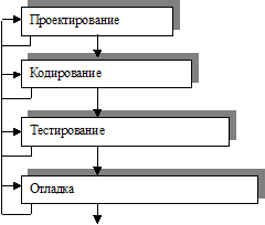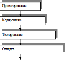 С точки зрения технологий программирования на сегодняшний день существует достаточно много различных моделей одна из них это каскадная модель. Ее суть заключается в том, что этапы проектирования, кодирования, тестирования и отладки связаны в некоторую единую однонаправленную последовательность действий и предполагается линейное движение по этим этапам. Т.е. постановщик задачи общается с заказчиком, получает задачу, формулирует постановку задачи, архитекторы занимаются проектированием. После того так проектирование закончено, уже к вопросам архитектуры и проектирования не возвращаются, т.е. идет уже утвержденное решение архитектурное, которое начинает реализовываться на этапе кодирования. Понятно, что эта модель она немножечко утрированная, потому что такая линейная последовательность без возврата встречается очень редко, хотя из-за того, что кодирование, тестирования и отладка очень часто связаны с некоторыми итерационными вещами. Так или иначе, мы можем в процессе тестирования обнаружить достаточно существенную ошибку, и возникает необходимость на кодирование и т.д