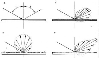 Рис. 1.5. Схемы отражения света от различных поверхностей материалов