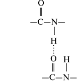 Водородная связь. Водородные связи возникают в результате дипольных взаимодействий между ковалентно связанным водородным атомом, имеющим положительный заряд, и отрицательно заряженным ковалентно связанным атомом – акцептором. Ниже приведены примеры различных водородных связей (обозначены пунктиром), образующихся в белках.