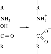 Солевая связь. Такие кислоты, как лизин и аспарагиновая, могут образовывать солевые или ионные связи: