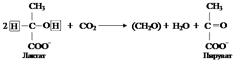 Зеленые растения для восстановления СО2 используют в качестве донора водорода воду и при этом выделяется кислород (оксигенный процесс):