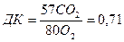 При расходовании в процессе дыхания углеводов ДК будет равен 1. Как следует из уравнения,