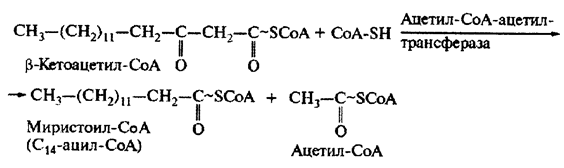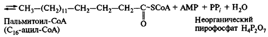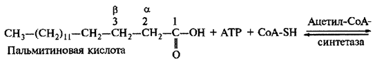 Образовавшиеся при гидролизе ТАГ под действием липаз свободные жирные кислоты находятся в цитоплазме. Так как мембрана митохондрий непроницаема для жирных кислот, они попадают в матрикс митохондрий после активирования (реакция 1) в виде СоА-эфиров в результате ряда ферментативных превращений под действием фермента карнитинацилтрансферазы.