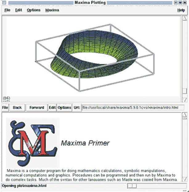 Отметим, что система Maxima — это некоммерческий проект с открытым кодом. В программе Maxima для математической работы используется язык, сходный с языком в пакете Mathematica, а графический интерфейс построен по тем же принципам. Изначально программа называлась Xmaxima и создавалась для UNIX-систем.