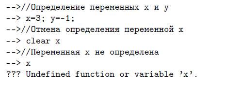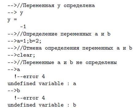 которая отменяет определения всех переменных данной сессии. Далее приведены примеры применения этой команды: