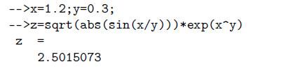Пакет Scilab снабжен достаточным количеством всевозможных встроенных функций, знакомство с которыми будет происходить в следующих разделах. Здесь приведем только элементарные математические функции, используемые чаще всего: