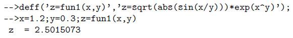Функция, как правило, предназначена для неоднократного использования, она имеет входные параметры и не выполняется без их предварительного задания. Рассмотрим несколько способов создания функций в Scilab.