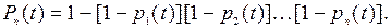 Отказ наступает тогда, когда выходит из строя последний из работающих элементов. Поэтому для того, чтобы в течение времени t отказала резервная группа, нужно чтобы в течение этого времени отказали все элементы. Так как все отказы независимы, то по теореме умножения вероятностей получим