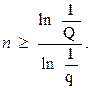 Задача № 1. Задана ненадежность элемента q(t) и требуется найти такое число резервных элементов, при котором ненадежность системы Qn(t) не будет превосходить заданной величины Q. Из неравенства