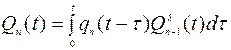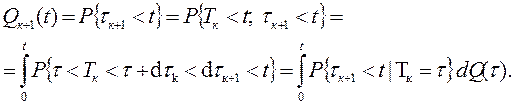 Случайные времена tк зависят друг от друга, т. к. время жизни резервного элемента зависит от того, когда он перешел в рабочее состояние, т.е. зависит от времени ti. Две последовательные функции Qк(t) и Qк+1(t) будут связаны между собой следующим соотношением