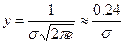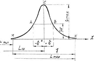 Точки А и В являются точками перегиба кривой и расположены от центра рассеяния на расстоянии ± σ. Частота У в точках А и В будет равна