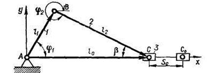 где φ1 , φ2 — углы, образованные звеньями 1 и 2 с осью Ах (рис. 2.2); l1 l 2 — длины звеньев 1 и 2; l0 = Хс — отстояние звена 3.