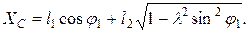 можно получить положение ведомого звена в зависимости от угла φ1 поворота кривошипа в виде Хс