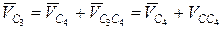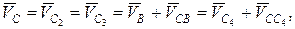 векторные суммы определяются точкой пересечения линий действия относительных скоростей. Точку пересечения этих линий обозначим С, абсолютная скорость точки С определится из условия