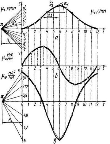 Метод кинематических диаграмм. В тех случаях, когда необходимо установить законы изменения скоростей и ускорений за определенный промежуток времени движения звена, применяют метод кинематических диаграмм, который базируется на графическом дифференцировании и интегрировании.