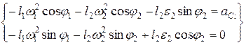= const, получают уравнения для определения углового ускорения шатуна ε2 и относительного ускорения звена