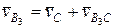 Скорость точки С, принадлежащей стойке, равна нулю. Скорость точки В3 звена 3 определим через известные скорости точек звеньев, примыкающих к звену 3, — точки В2 на звене 2 и точки С на звене 0: