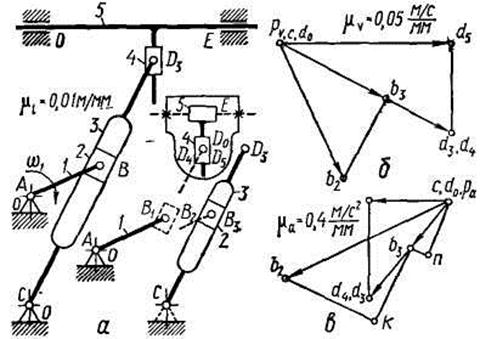Скорости и ускорения ведомых звеньев механизма могут быть определены методами планов, кинематических диаграмм и аналитическими. Во всех случаях в качестве исходных должны быть известны: схема механизма при определенном положении ведущего звена, его скорость и ускорение.