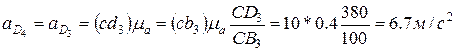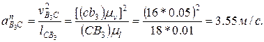 Из подобия плана относительных ускорений плану звена определим ускорение