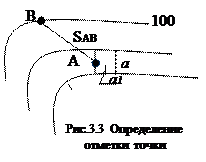 Точка В находится на горизонтали поэтому ее отметка будет равна высоте горизонтали (НВ=100м).