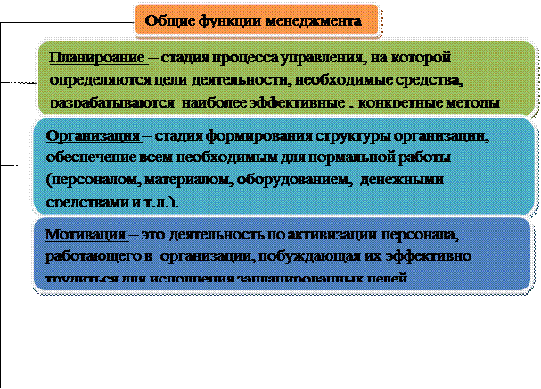Функция менеджмента это особые виды деятельности, выражающие направления или стадии осуществления целенаправленного воздействия на связи и отношения людей в процессе производства и управления. Система функций менеджмента - комплекс взаимосвязанных во времени и пространстве видов деятельности, осуществляемых субъектом управления при целенаправленном воздействии на тот или иной объект.