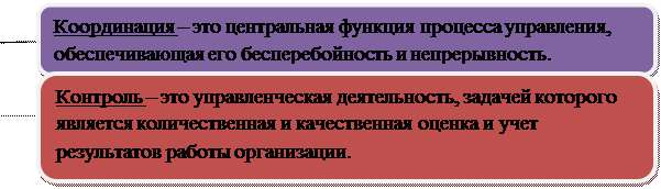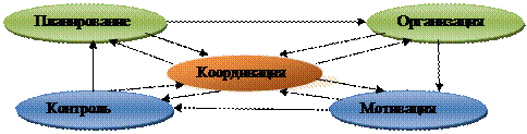координация деятельности структурных подразделений и работников организации. Координация осуществляется как предварительное согласование действий при подготовке планов и как согласованная реакция на возникающие помехи и проблемы при выполнении планов;