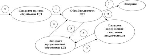 Обобщенный жизненный цикл процесса можно представить в виде некоторого ориентированного графа,, называемого графом состояний, у которого есть узлы состояния и ребра, по которым процесс может переходить из одного состояния в другое, называемого графом состояний..