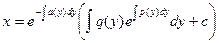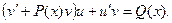 . Из первого уравнения (уравнение с разделяющимися переменными) находим v=v(x), затем из второго уравнения находим u=u(x,C). Затем находим общее решение уравнения y= v(x)◦ u(x,C).