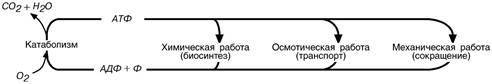 Энергия, высвобождаемая в реакциях катаболизма, запасается в виде связей, называемых макроэргическими. Основной и универсальной молекулой, запасающей энергию, является АТФ.