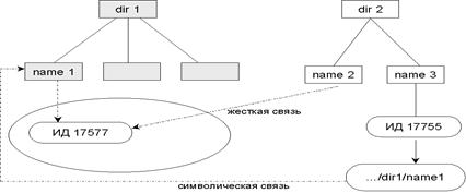 Для этого используется команда: ln …dir1/name1 …dir2/name2 – (дли индексного дескриптора, с которым ассоциировано имя name1 добавляется еще одно имя – name2).