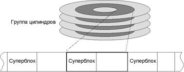 Суть кластеризации заключается в следующем. Дисковое пространство, также, как и в модели s5fs имеет суперблок в котором размещена ключевая информация файловой системы (структура суперблоков s5fs и ffs, в общем случае, логически идентична), далее, дисковое пространство разделено на области одинакового размера, называемые группами цилиндров. Далее, стратегия функционирования файловой системы такова, что она старается разместить содержимое файлов (блоки файлов) в пределах одной группы цилиндров, при этом стараясь располагать файлы в той же группе цилиндров, что и каталог в котором они расположены.