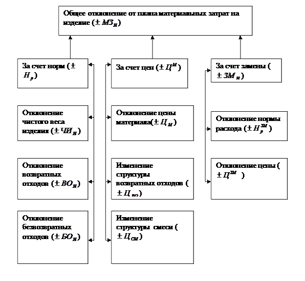 Рисунок 1 – Схема анализа отклонения от плана уровня материальных затрат на 1 изделие