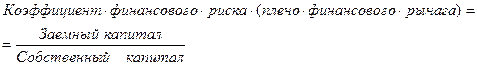 Показывает, сколько заемных средств привлечено на 1 рубль собственных. Рост коэффициента финансового риска свидетельствует о потере финансовой устойчивости и достижении ее критической точки;