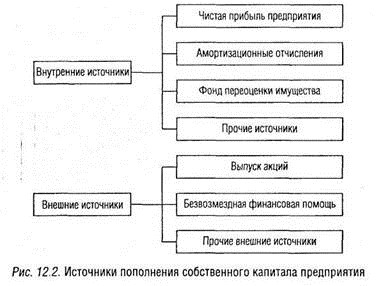 Основным источником пополнения собственного капитала является прибыль предприятия. Если предприятие убыточное, то собственный капитал уменьшается на сумму полученных убытков. Значительный удельный вес в составе внутренних источников занимают амортизационные отчисления от используемых собственных основных средств и нематериальных активов. Они не увеличивают сумму собственного капитала, а являются средством его реинвестирования. К прочим формам собственного капитала относится добавочный капитал, формируемый за счет переоценки основных средств и нематериальных активов.