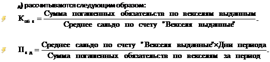 Коэффициенты оборачиваемости (Коб в) и продолжительность долга по выданным векселям (Пв