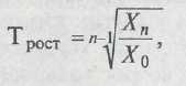 где Трост — среднегодовой темп роста изучаемого показателя за п лет; Хn — изучаемый показатель в отчетном периоде; X0 — изучаемый показатель в базисном периоде; п — число периодов.