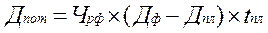 Если фактически одним рабочим отработанно меньше дней и часов, чем предусматривалось планом, то можно определить сверхплановые потери рабочего времени: целодневные (Дпот) и внутрисменные (tпот):